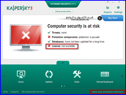 ننقر علي insert your activation code here